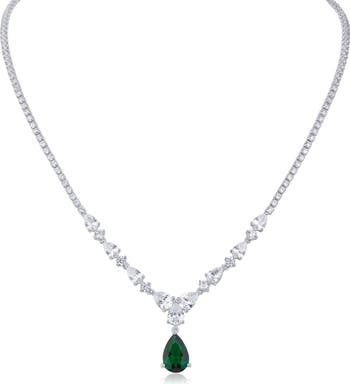 A sleek pear-cut drop lends an air of elegance to a statement-making chain adorned with cubic zirconia that instantly brighten any neckline.