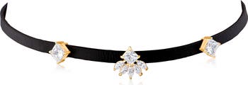 Princess- and marquise-cut cubic zirconia stations illuminate this sleek faux-leather choker necklace that's perfect to layer or show off solo.