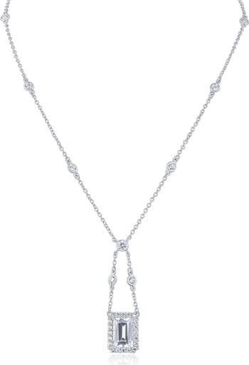 A swingy emerald-cut cubic zirconia pendant anchors a station-chain necklace that brings glamorous sparkle to any look.