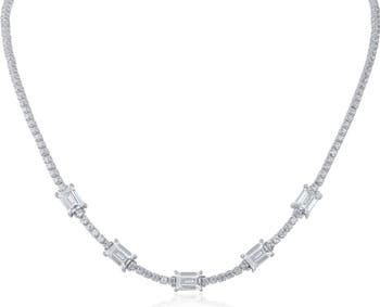 Round- and baguette-cut cubic zirconia is prong-set along this timeless tennis necklace.
