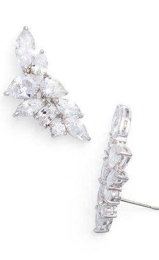 Leafy clusters of quality cubic zirconia trace the earlobe with megawatt sparkle.