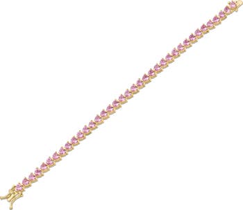 Elevate your look with a single‑strand tennis bracelet adorned with heart‑cut cubic zirconia and finessed in a goldtone plate setting.