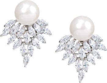 Pearls and marquise CZ combine to create a dramatic and glam stud earrings.
