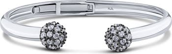 Pavé cubic zirconia balls bring glamorous sparkle to this hinged cuff bracelet boasting a high-shine finish.