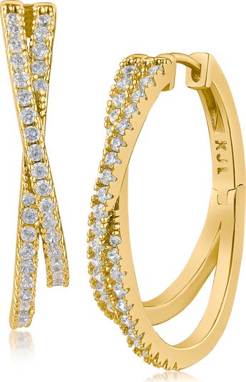 Pavé Cubic Zirconia Crossover Hoop Earrings