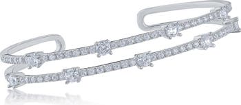 Prong-set round cubic zirconia bring glamorous sparkle to this caged cuff bracelet boasting a high-shine finish.