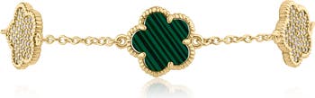 Pavé Cubic Zirconia & Simulated Malachite Clover Charm Bracelet