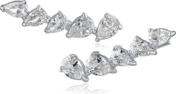 Graduated pear-cut cubic zirconia add sparkle and shine to ear crawlers finished in bright polish.