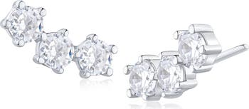Amplify the shine of your stack with these crawler stud earrings done in icy plating and prong-set with bright-white cubic zirconia.