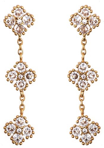 Clover-shaped, cubic zirconia clusters add brilliant shimmer to statement drop earrings for an effortlessly elegant finish.