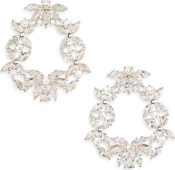 Shimmering cubic zirconia stones trace the lace-like open circles of these elegant earrings delivering a light-catching, glamorous glow.