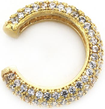 Pavé set cubic zirconia stones give a brilliant sparkle to a round ear cuff that gives your look a trendy finish.