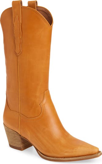 Ornate stitching furthers the rugged Western style of this iconic boot balanced by a slender toe and stacked block heel.