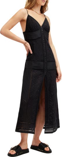 This breezy cotton-modal maxi is designed with airy embroidery, ladder stitching and crisp pintucks.