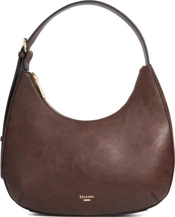 Gleaming logo hardware defines a crescent-shaped shoulder bag shaped from faux leather and featuring a spacious interior for all your must-haves.