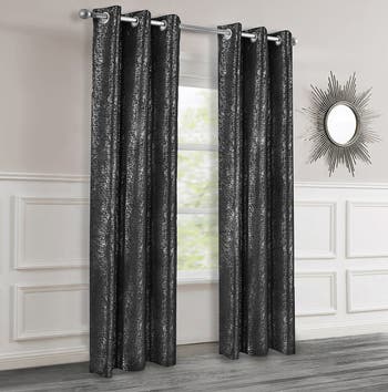Artistic Set of 2 Metallic Textured Thermal Insulated Blackout Curtain Panels