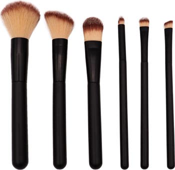 - Set includes powder brush, blush brush, foundation brush, pointed eye shadow brush, round eye shadow brush, eyeliner brush