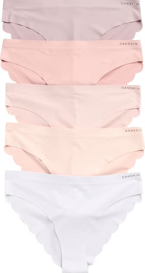 Stock up on everyday essentials with this pack of five tangas made from brushed microfiber and edged in sweet scalloped trim.