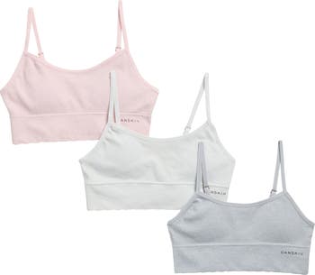An assorted trio of softly ribbed bralettes with scalloped bands makes the perfect set of basics for your growing kiddo.