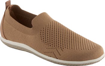 A knit upper and foam footbed deliver flexible comfort to this breathable slip-on sneaker.