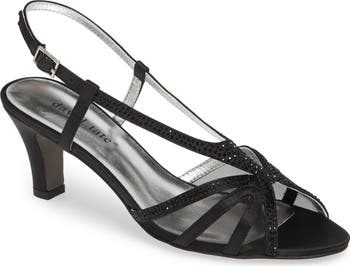 Crystal-encrusted straps and peekaboo mesh add eye-catching glamour to this strappy sandal.