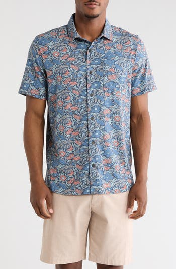Take on desk duties or hit the golf course in this short-sleeve knit button-up covered in a cruise-inspired floral print.