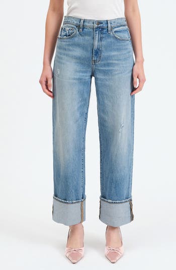 Low-stretch denim and light distressing elevate these vintage-inspired jeans designed with straight legs and always-on-trend cuffed hems.