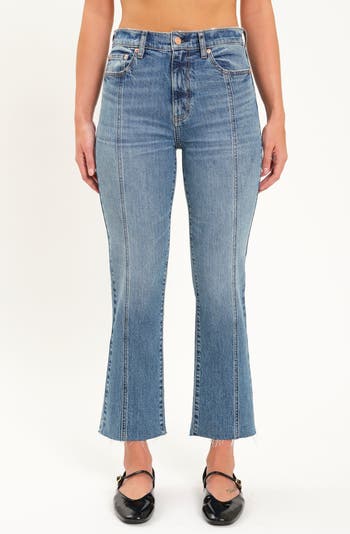These crop flare jeans are so cute! I get complments every time I wear them. Love the raw hem, flare leg, and the denim wash is a perfect jean color.