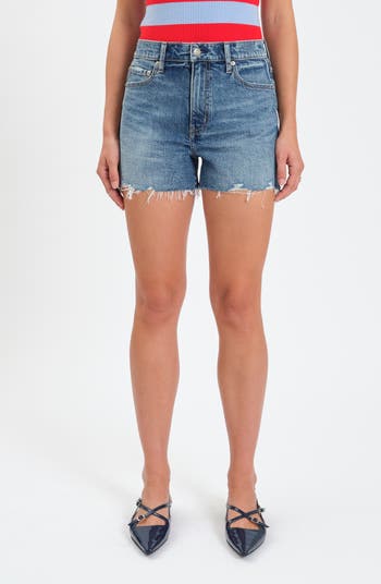 Keep it kicked back in high-waisted cutoff shorts cut from stretch-kissed denim and turned to the perfect pre-loved fade.