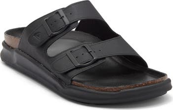 Head from the beach to boardwalk in this faux-leather slide sandal boasting adjustable straps, a contoured footbed and textured grip sole.