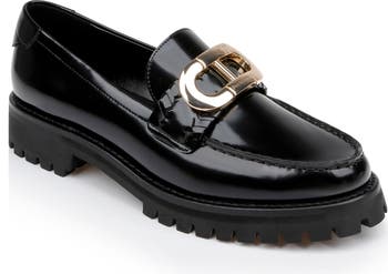 Logo-debossed bit hardware makes a signature statement atop a sophisticated loafer set on a chunky platform and durable lug sole.