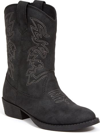 Decorative stitching plays up the charm of this Western boot with handy side pull-tabs for kid-approved easy-on comfort.
