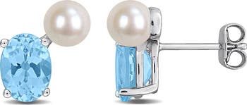 Cultured pearls add an air of elegance to earrings featuring an oval-cut Sky Blue topaz for an extra dose of shine.