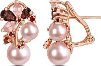 6-8.5mm Cultured Freshwater Pearl & Gemstone Cluster Earrings