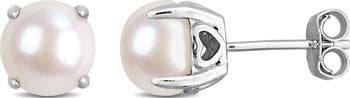 Cultured freshwater pearls bring elegant shine to these classy stud earrings crafted from polished sterling silver.