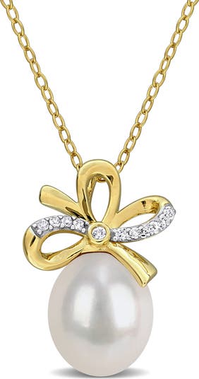 - Yellow gold/cultured freshwater pearl/lab-created white sapphire