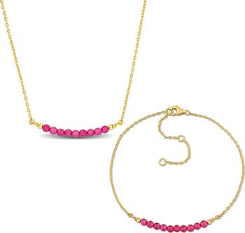 Made to wear together or styled separately, this necklace and bracelet set features beaded lab-created rubies for vibrant sparkle.
