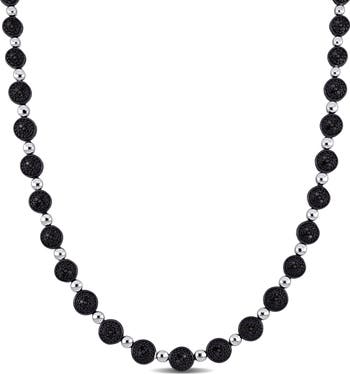Mark a special milestone with a collar necklace with alternating sterling silver beads and discs fill with round-cut black diamonds for a brilliant sparkle.