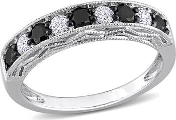 Mark a special milestone with an open-work ring with a sterling silver band and round-cut black and white diamonds for a brilliant sparkle.