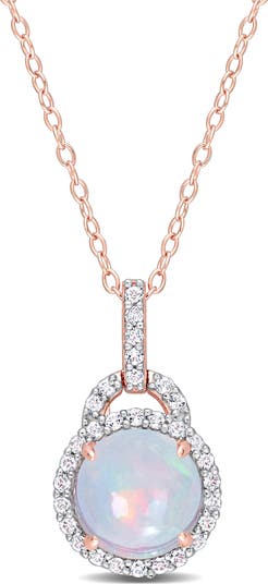 Lab-grown white sapphires frame a blue Ethiopian opal pendant on a dainty necklace that brings elegant sparkle to any look.