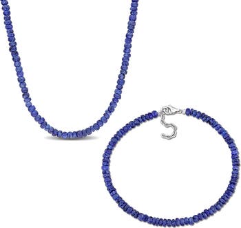 Faceted blue sapphire stone beads trace this coordinated necklace and bracelet set that's perfect to layer or show off solo.