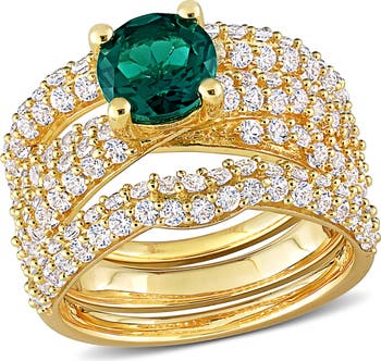 An assortment of lab-created emeralds and lab-created white sapphires add a brilliant sparkle to this radiant stackable ring set.