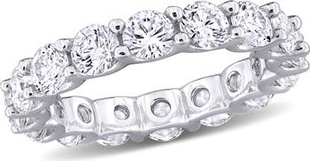 A created-white-sapphire band ring is the perfect everyday accessory that goes with many different looks.