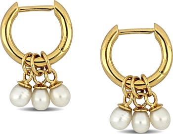 Cultured freshwater pearls suspend from charming vintage-inspired huggie hoop earrings that are perfect for everyday wear.