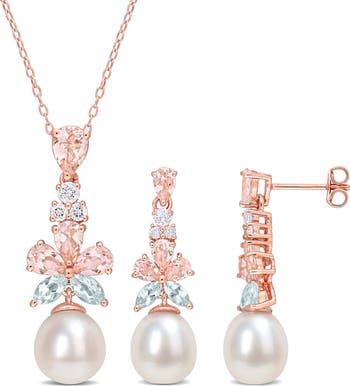 Mixed-cut semiprecious stones and cultured freshwater pearls illuminate this drop earrings and pendant necklace set that's perfect for a glamorous look.