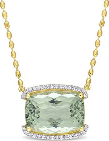 Glistening white topazes top and bottom this green-quartz stone that is strung on an 18-karat-gold plated necklace.