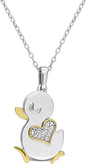 Bring a touch of whimsy to your everyday ensembles with this sterling silver necklace suspending a duck pendant outlined in goldtone plate and finished with a pavé heart.