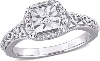 Mark a special milestone with this ring cast from sterling silver with a textured, open-work infinity band and a halo of round-cut diamonds for a brilliant finish.