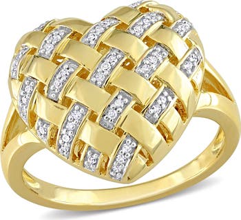Elevate your special occasion style with a woven-textured heart shaped ring filled with sparkling diamonds.