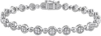 Round-cut diamonds are prong-set along this timeless tennis bracelet crafted from sterling silver.
